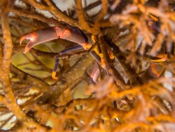 Crabs are the common name for any of a group of crustaceans characterized by a reduced abdomen and an enlarged and broadened anterior portion of the body. Mainly marine, some crabs live in fresh water or on land. Crabs are divided into two groups: true crabs (about 4500 species) and hermit crabs and their allies (about 1400 species). They are related to lobsters and shrimps, but their evolutionary development has enabled them to walk or run sideways and to burrow as well as swim. Mostly active animals with complex behavior patterns, crabs have compound eyes and can see well. The senses of smell and taste, also well developed, allow them to identify both food and prospective mates.