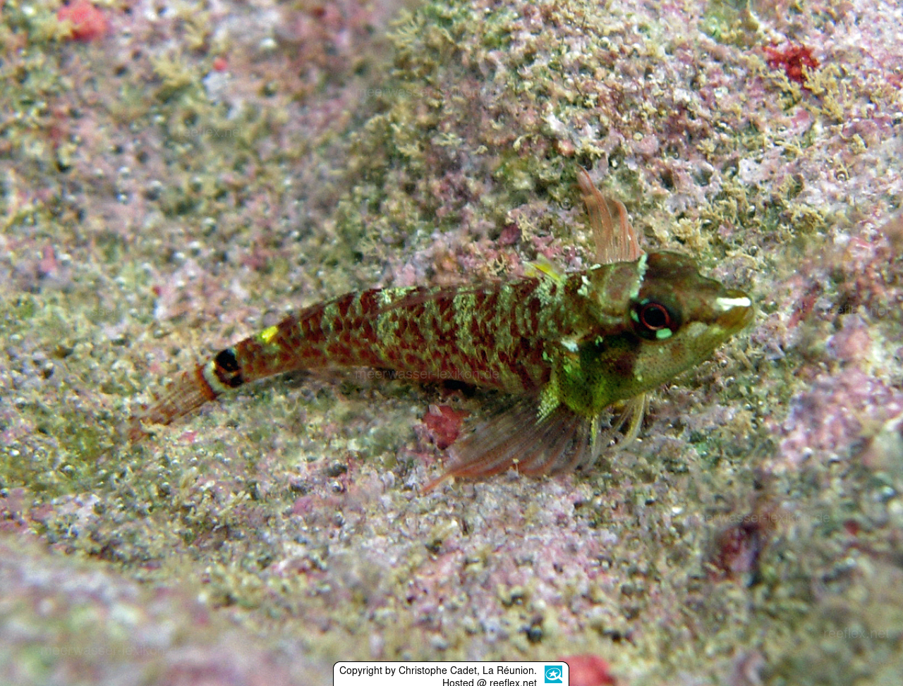The blenny is found in coral and rocky reefs as well as in tide pools.