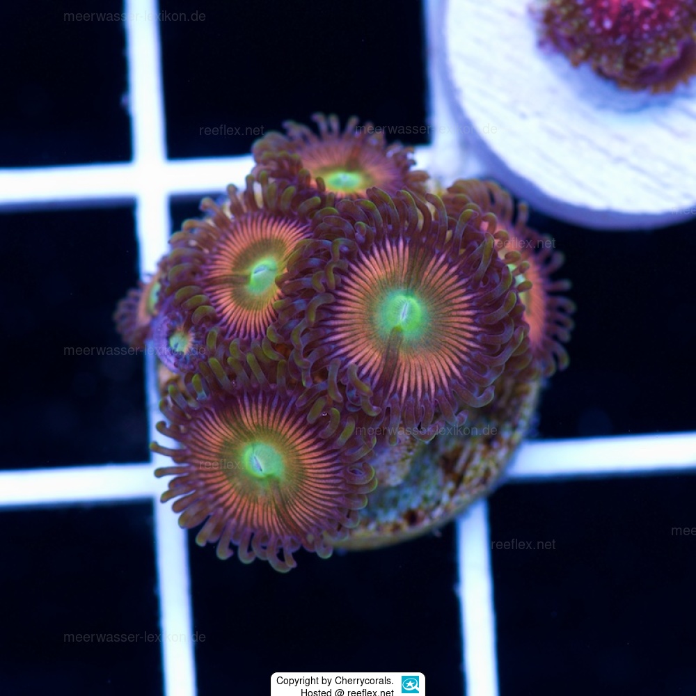 These beautiful Zoanthid or button polyps are sold as Zoanthus „Orange Fusions“ at Local fish Dealers and in online coral Shops. Many Thanks by Cherrycorals for the Picture.